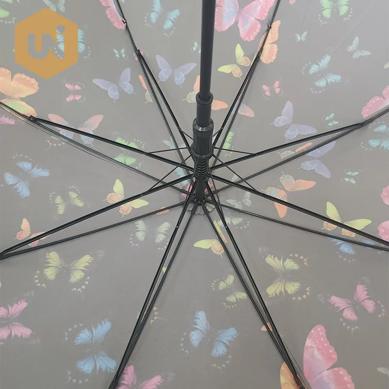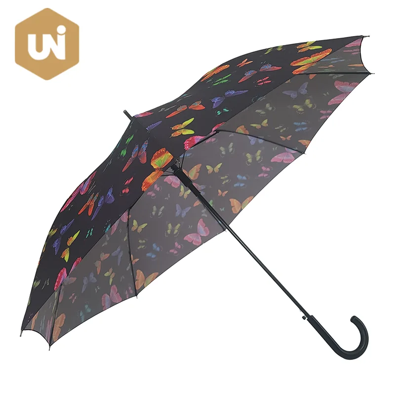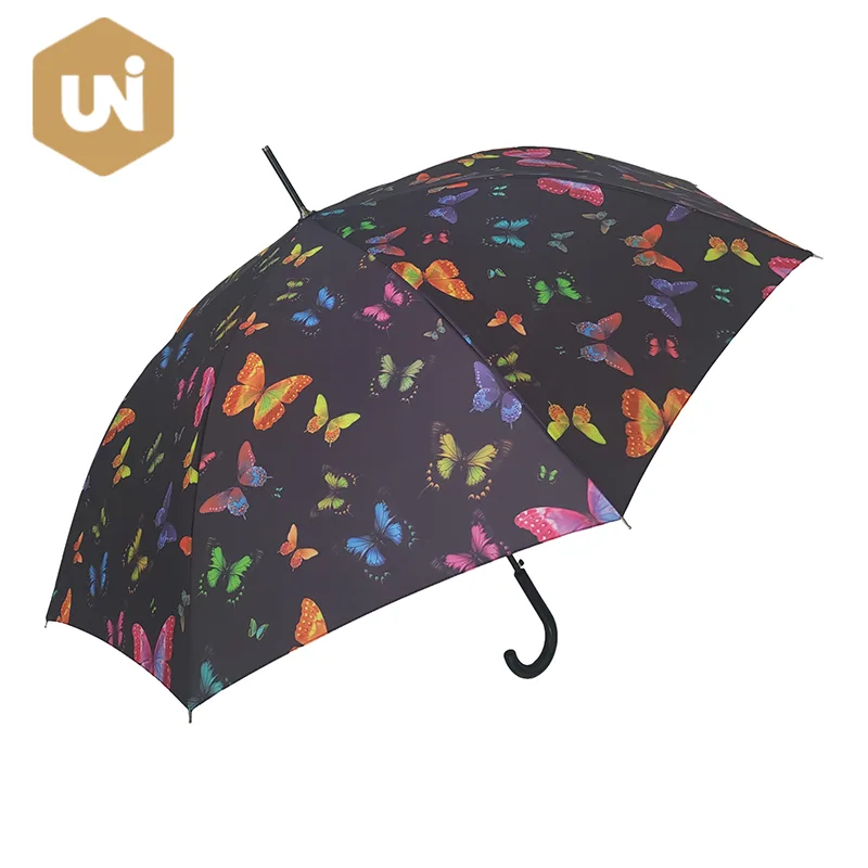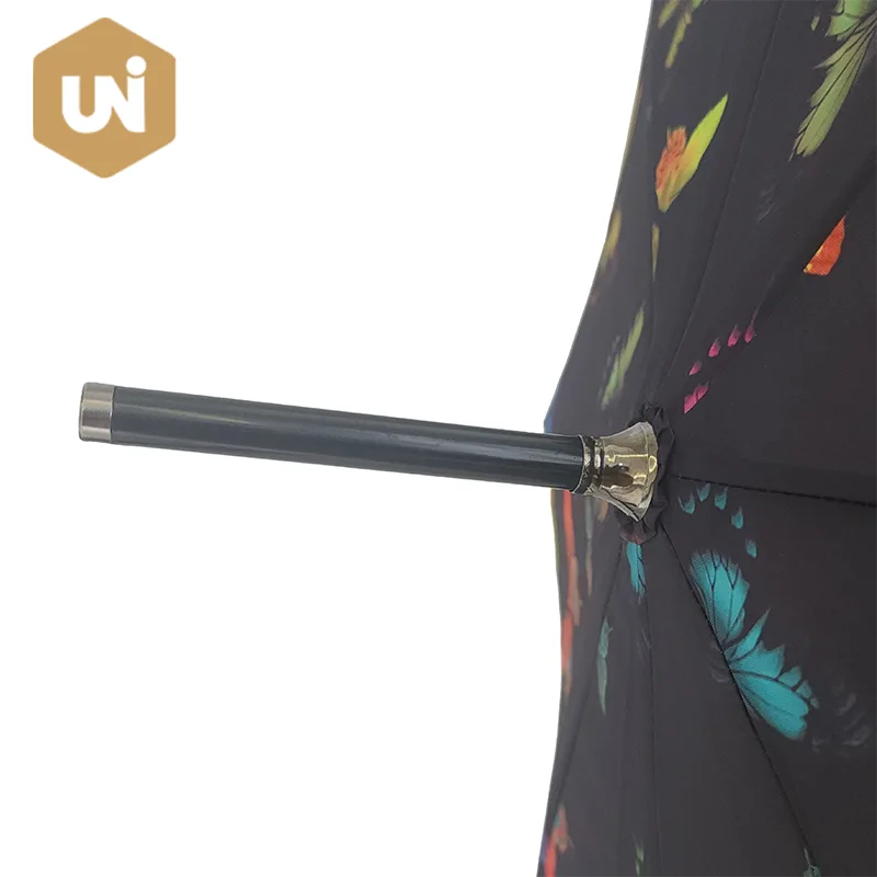 سيدة الموضة الكبار عصا مظلة إطار وعمود من الألياف الزجاجية، مقبض مطاطي، قماش حريري 210T مقاوم للماء. |