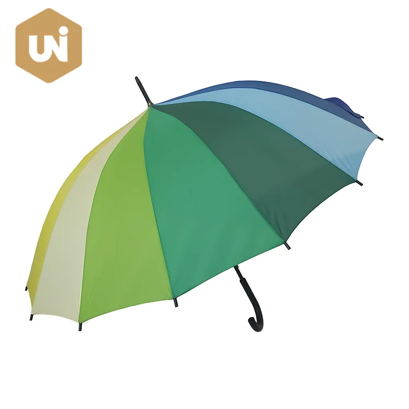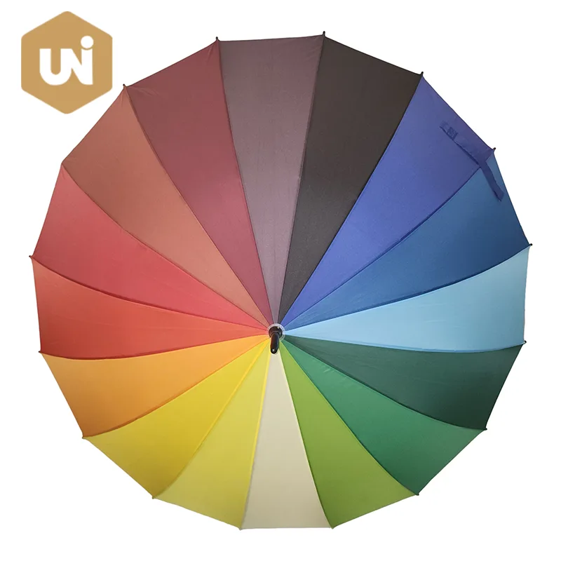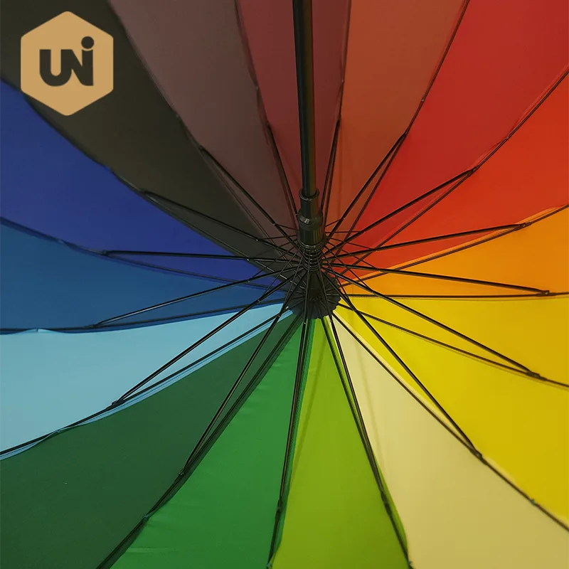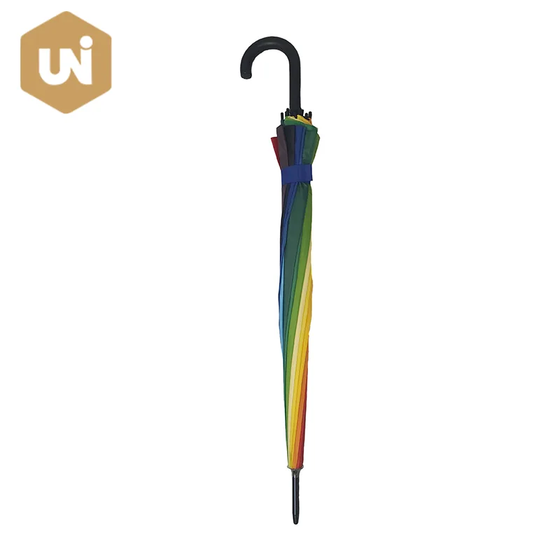 قوس قزح الكبار عصا مظلة أوتوماتيكية إطار وعمود من الألياف الزجاجية، مقبض مطاطي، قماش حريري 210T مقاوم للماء. |